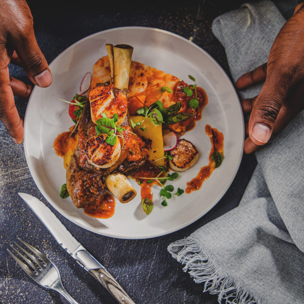 - Rôti de bœuf, sauce dijonnaise et chimichurri